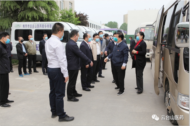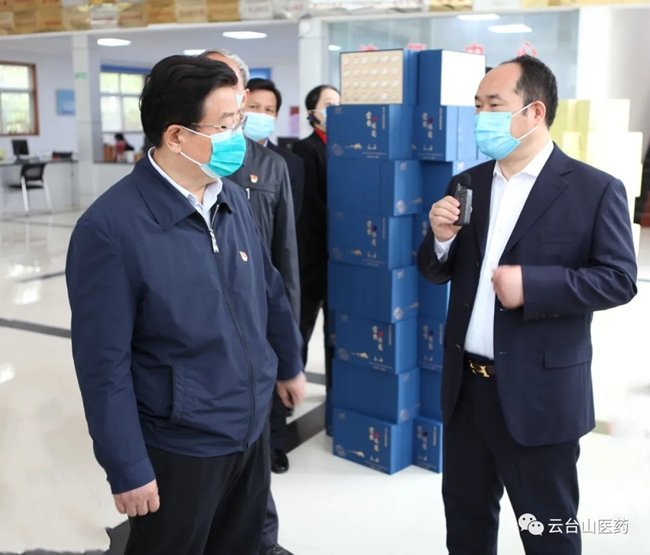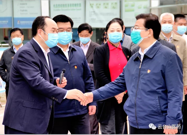 2020年4月17日上午,焦作市人民政府市長徐衣顯帶領五大班子領導及各縣區主要領導蒞臨焦作市云臺山醫藥公司指導工作。云臺山醫藥公司董事長楊文成向徐市長詳細介紹了云臺山醫藥公司的發展現狀及云臺山醫藥物流園的發展規劃。