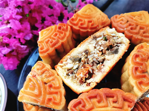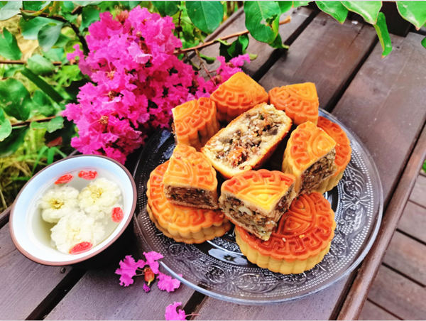 “月明菊香”月餅所含的蜂蜜和菊花,有護膚美容、促進消化、改善睡眠、抗疲勞、抗菌消炎、促進組織再生、潤肺祛痰止咳、祛濕利尿、涼血止血、寧心安神、清熱解毒、保肝、明目等功效故選用上等蜂蜜和懷菊花烘焙而成。月餅色澤紅潤、晶瑩剔透,口感細膩;六代傳承、配料正宗、傳統工藝、色香味俱全、入口猶如母親的雙手輕拂你的額頭,這正應了“玉食皆入口,此餅乃獨絕”這句話。