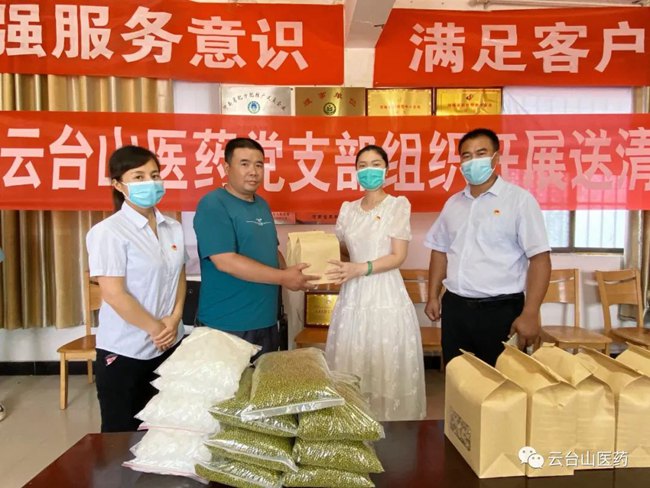 “大家辛苦了,這么熱的天,一定要做好防暑降溫工作”,6月24日,云臺山醫藥集團黨支部書記馬杰帶領黨支部成員看望、慰問了奮戰在一線的干部、員工,并為他們送去了云臺懷菊、綠豆、冰糖等防暑慰問品,讓大家在炎熱的天氣中能夠消暑解渴、清涼去火,讓員工們在炎炎夏日里感受到清涼。